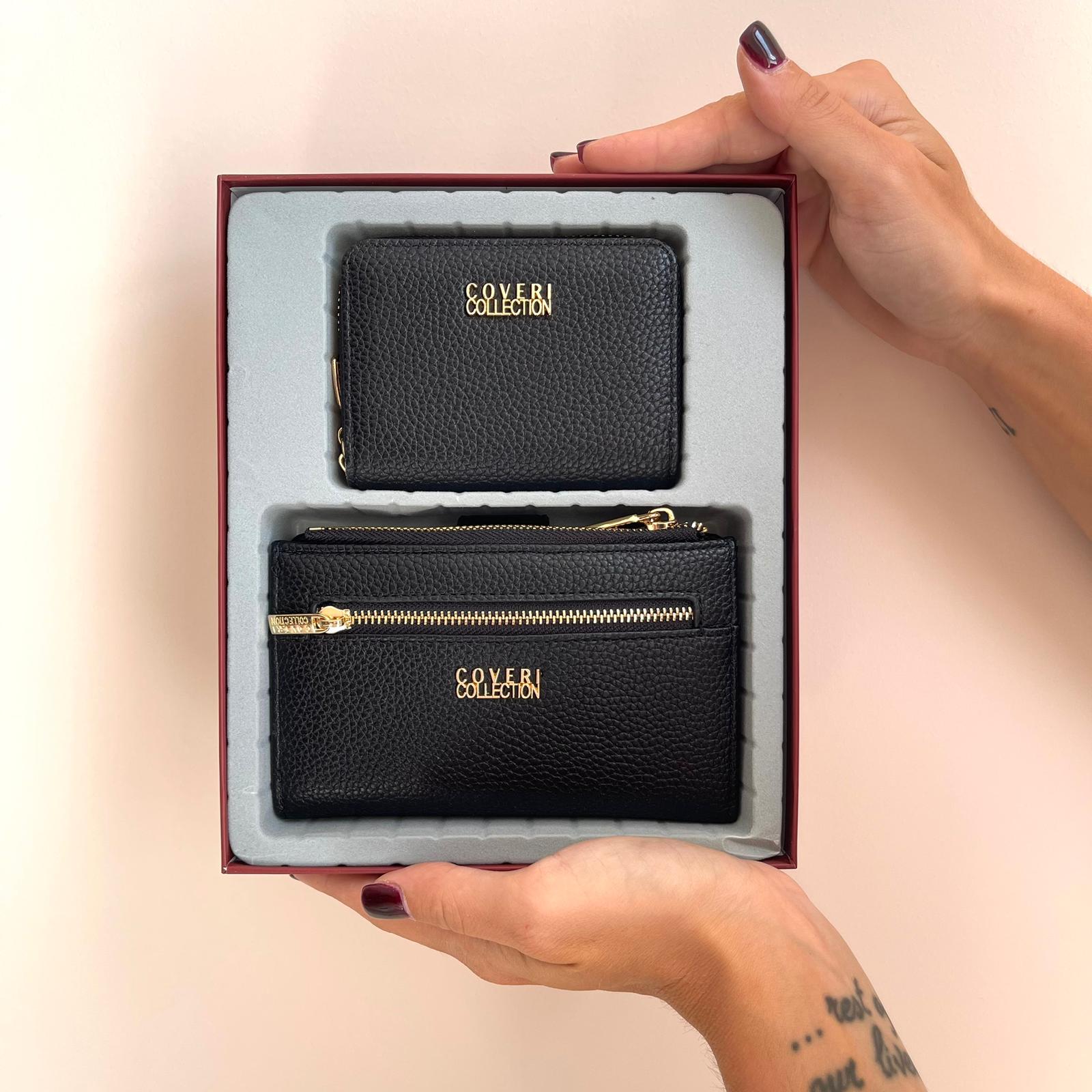 Scopri l'accessorio perfetto per l'uso quotidiano e le serate speciali. Questo raffinato set in ecopelle texturizzata offre due pezzi coordinati, pensati per organizzare con stile i tuoi essenziali.